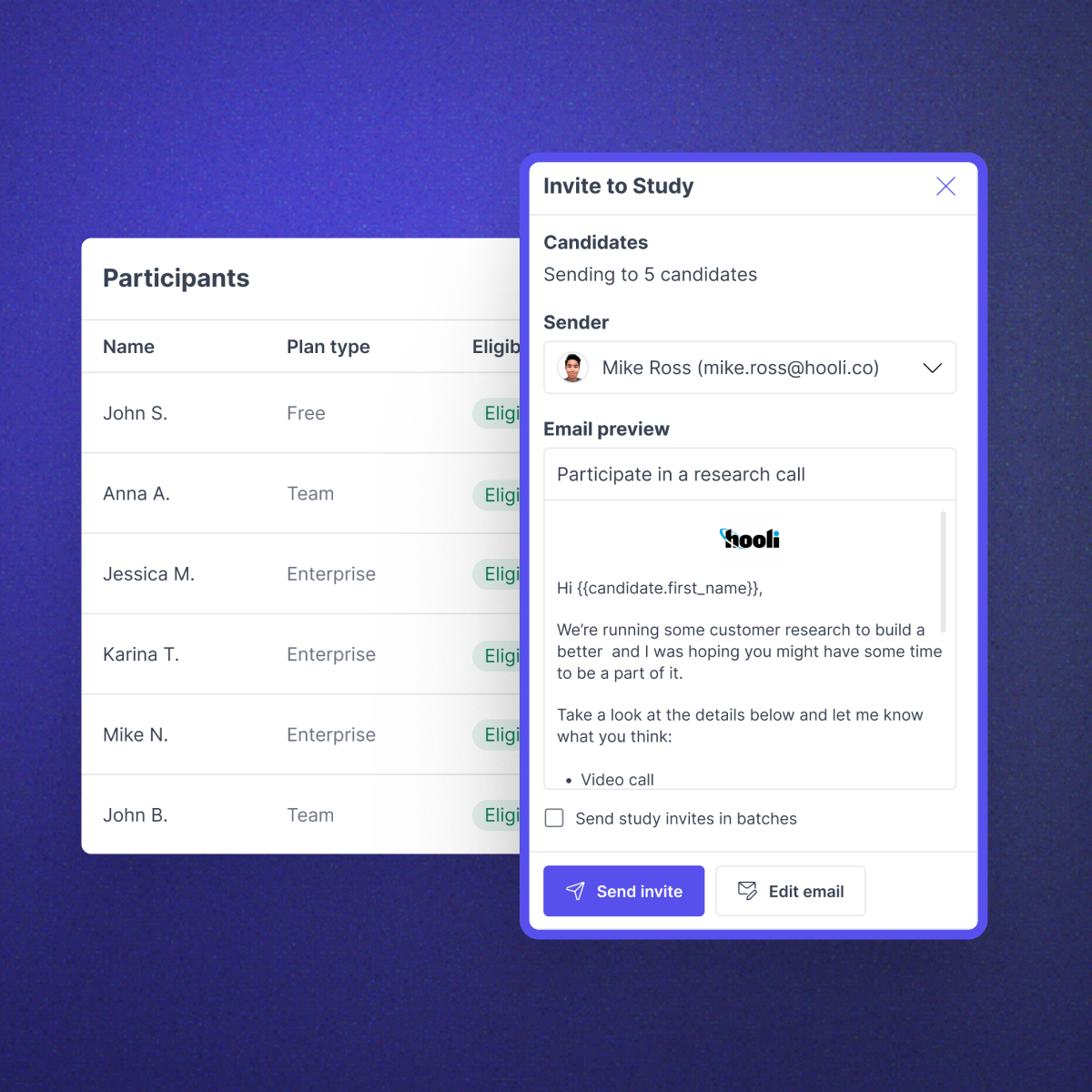 From quick surveys to deep interviews to usability tests, run any research method in one platform. AI helps you set up and moderates interviews when needed.