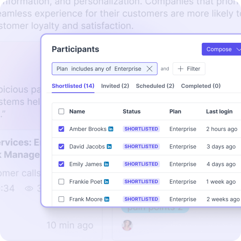 “Now our researchers can actually self-service and do their own recruitment, which really opens up our research operations team to focus on continuing to build our panel of enterprise users instead of doing the day-to-day recruitment.”