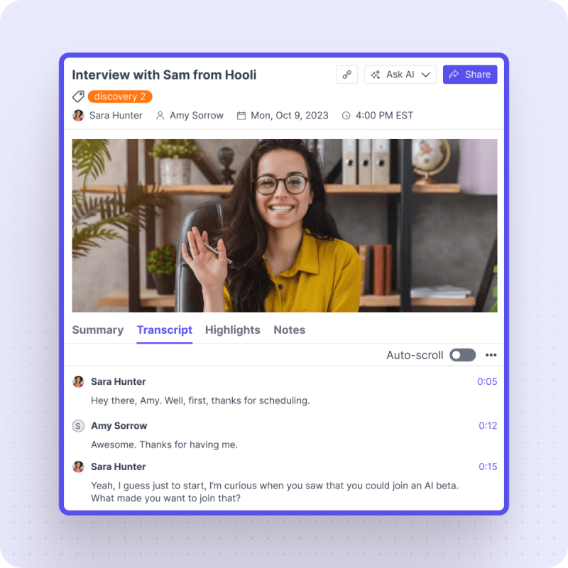 AI-generated transcripts and summaries.