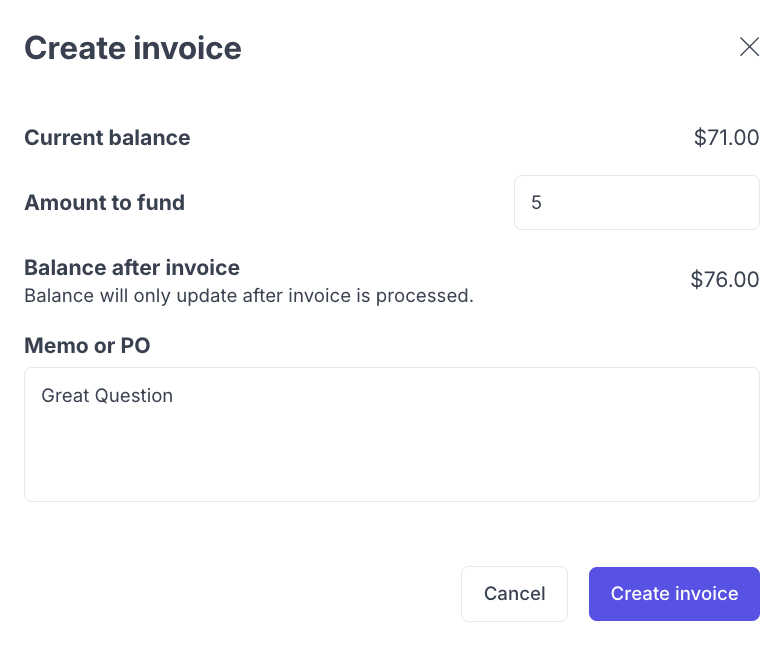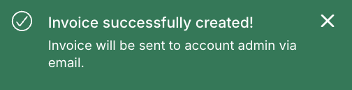 After the invoice is created, it’s automatically sent to the account owner or admin on your account for next steps.
