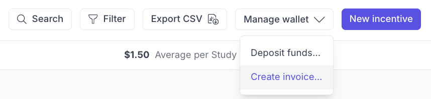You can generate an invoice from either the Wallets page or the Incentives page.