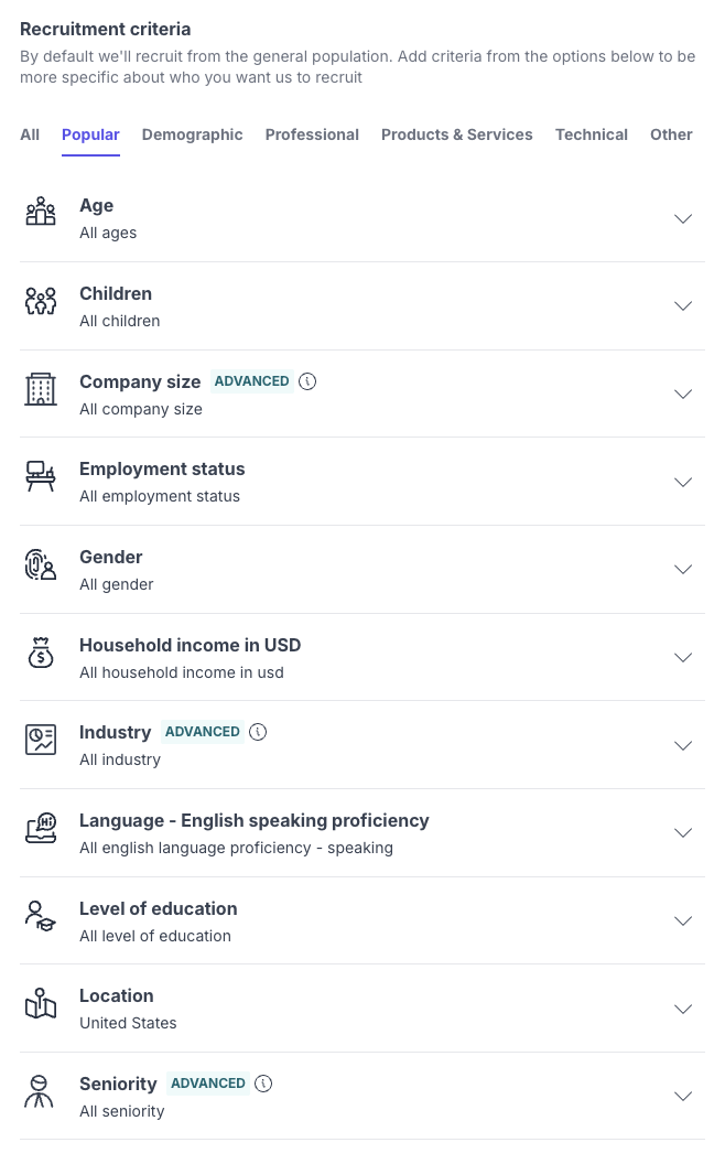 External recruitment in Great Question allows you to source qualified participants from User Interview's consumer and professional panels — perfect for when you need to reach audiences outside your own panel.