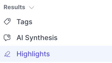 Highlights is a manual workspace. You create your own groups, drag and drop highlights between them, name your themes, and organize the evidence the way you see fit. This gives you full control over how findings are structured and is better suited for researchers doing deep qualitative analysis, building custom frameworks, or preparing findings for a specific audience. Because you are doing the organizing yourself, it takes more time but gives you more precision.
