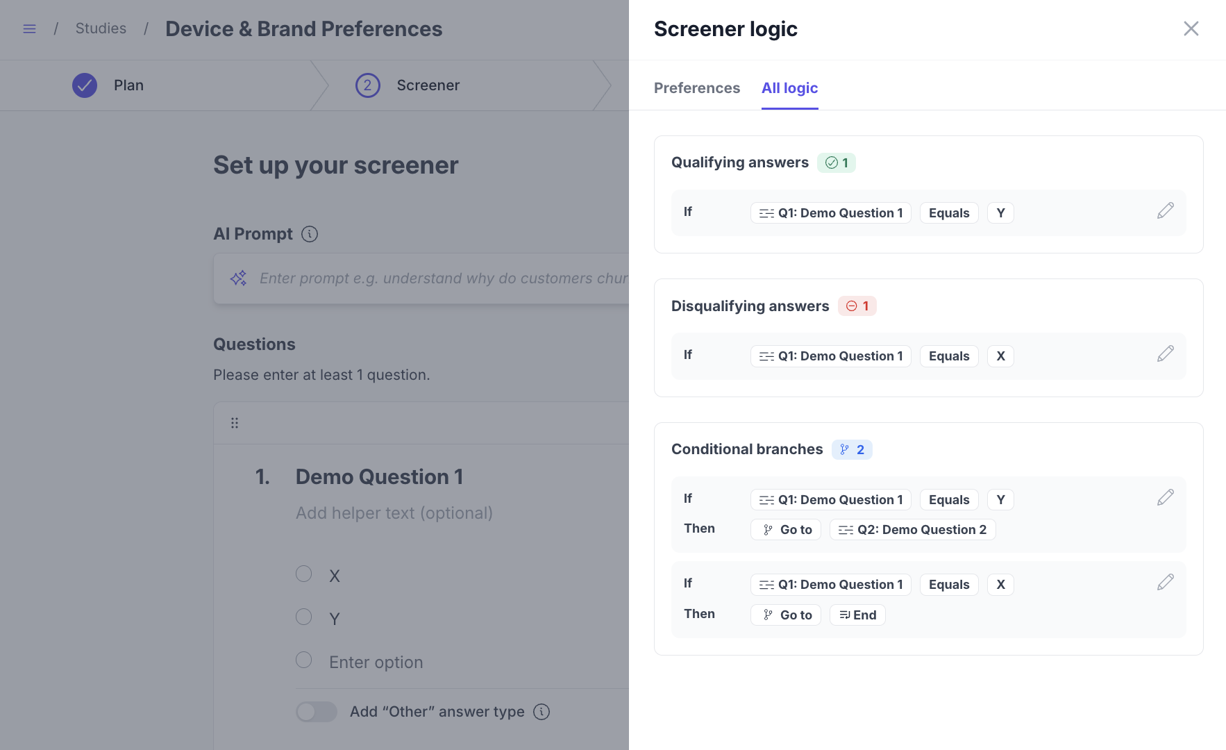 - All Logic: View all qualifying, disqualifying and branch logic for your screener.